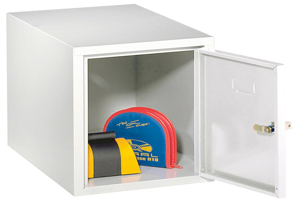 Schließfachwürfel, BxTxH 400x500x380 mm, Tür glatt, Etikettenrahmen, Zylinderschloss, geeignet für Motorradhelme, RAL 7035/5010 E841187