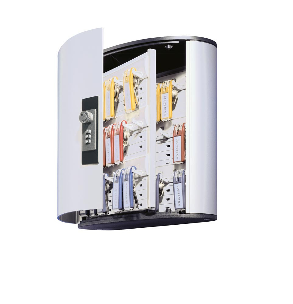 Schlüsselkasten, für 36 Schlüssel, BxTxH 302x118x280 mm, Zahlenschloss, metallic-silber