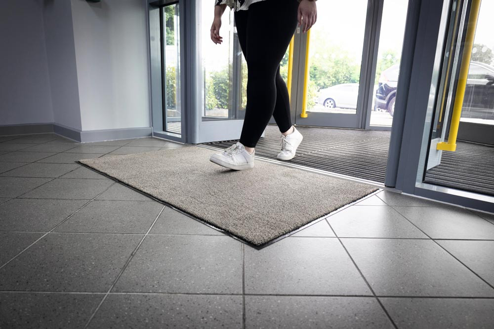 · Material Flor 100 % recyceltes Garn, Rückseite 80 % PVC und 20 % recyceltes Gummi · Herstellungsprozess verbraucht 70 % weniger Energie und 85 % weniger Wasser · Fängt Feuchtigkeit und Schmutz zuverlässig auf, Böden im Innenbereich bleiben sauber · Maschinenwaschbar bei 30 °C · Rutschfester Gummirücken · Absorbiert 2,4 Liter Flüssigkeit pro m2 · Geeignet für wenig bis mittelstark beanspruchte Bereiche im Innenbereich