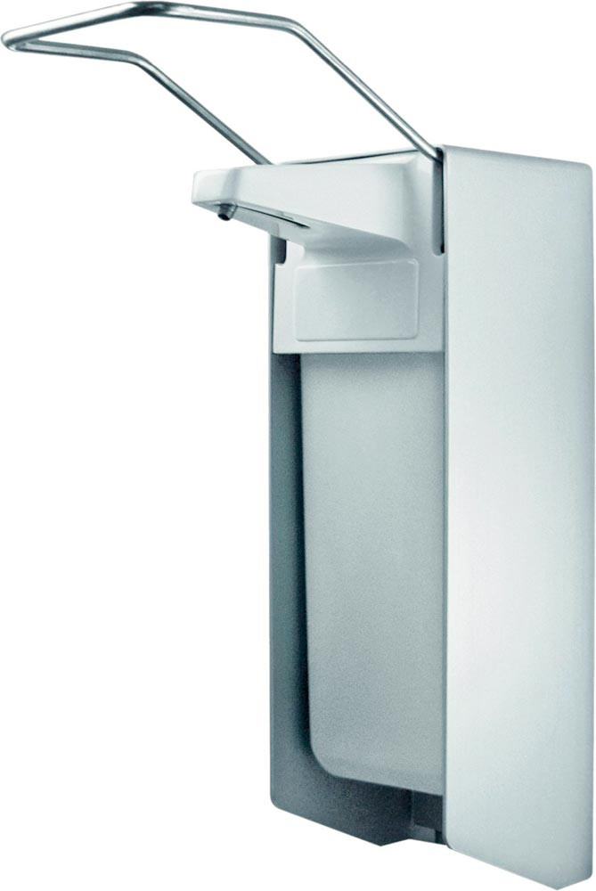 · Geeignet für Flüssigseifen und Desinfektionsmittel · Stabiles Aluminium- / Kunststoffgehäuse · Austauschbare Pumpe · Abschließbar · Abschlußplatte und Tropfschale mit Halter sind optional erhältlich · Inkl. Leerflasche und Montagematerial
