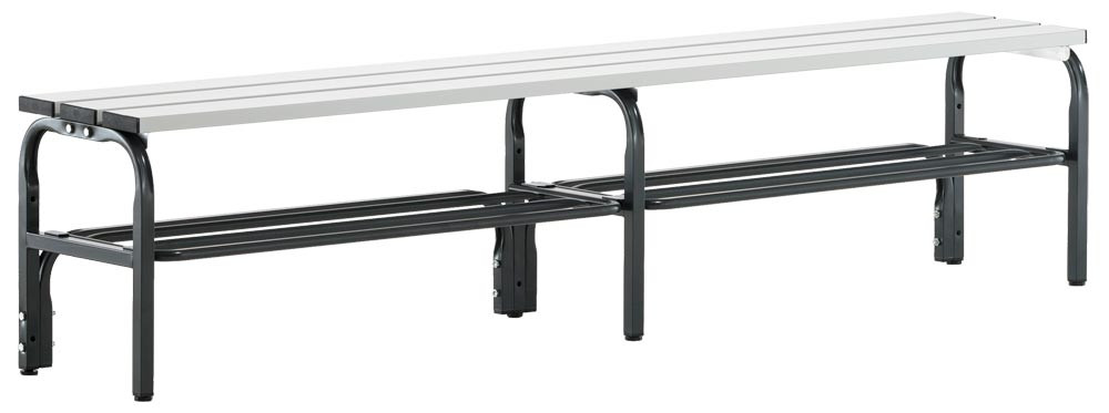Doppelseitige Garderobenbank, ohne Schuhrost, Stahl/Alu, TxH 700x450 mm, Länge 1015 mm, RAL 7016 E849109