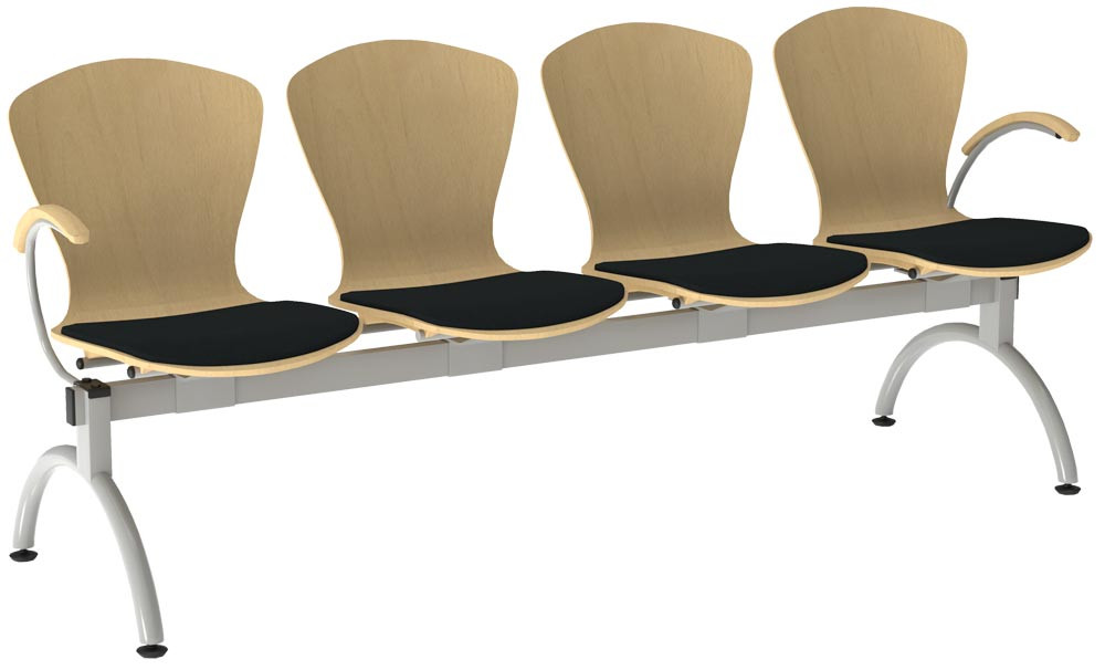 Traversenbank, Länge 2000 mm, 4 Sitze, Sitzschale buche, mit Polster