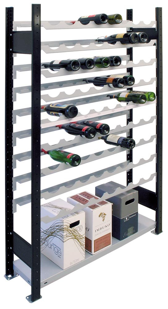 Weinflaschen-Steckregal, Anbaufeld, BxTxH 1000x250x1800 mm, Kapazität 72 Flaschen, 9 Lagerebenen