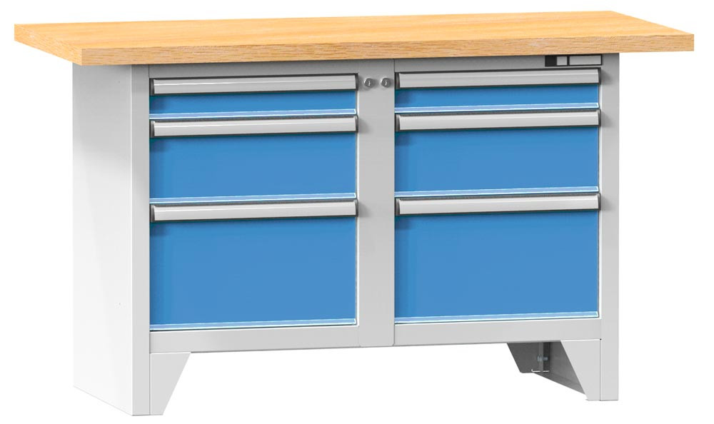 Werkbank, BxTxH 1500x700x880mm, 2 Module, 6 Schubladen 2x100, 2x200, 2x300 mm, Traglast 800 kg, RAL 7035/5012 E6423908