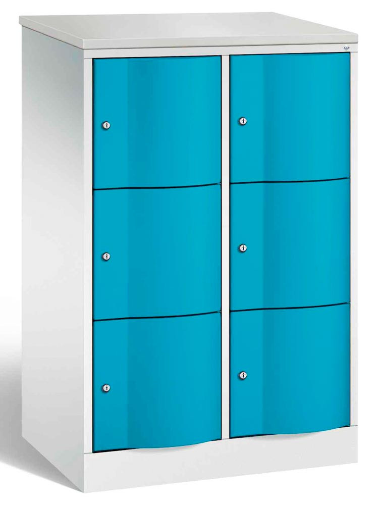 Wertfachschrank mit Spezialtüren, 2x3 Fächer, Abdeckplatte, BxTxH 770x540x1255 mm, RAL 7035/5012 E1962786
