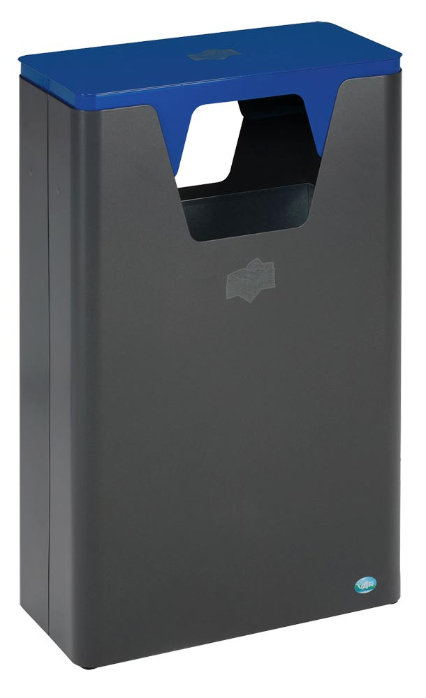 Wertstoffsammler, Stahlblech, Volumen 60 Liter, abnehmbarer Aufsatz, BxTxH 500x250x825 mm, Korpus eisenglimmer, Aufsatz blau
